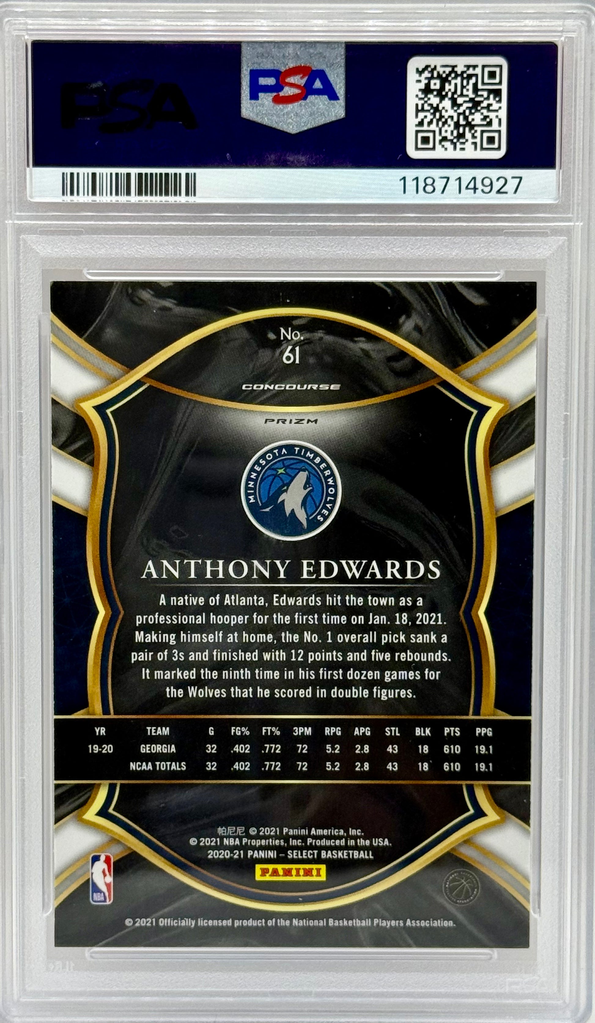 Anthony Edwards 2020 Panini Select RC PSA 10