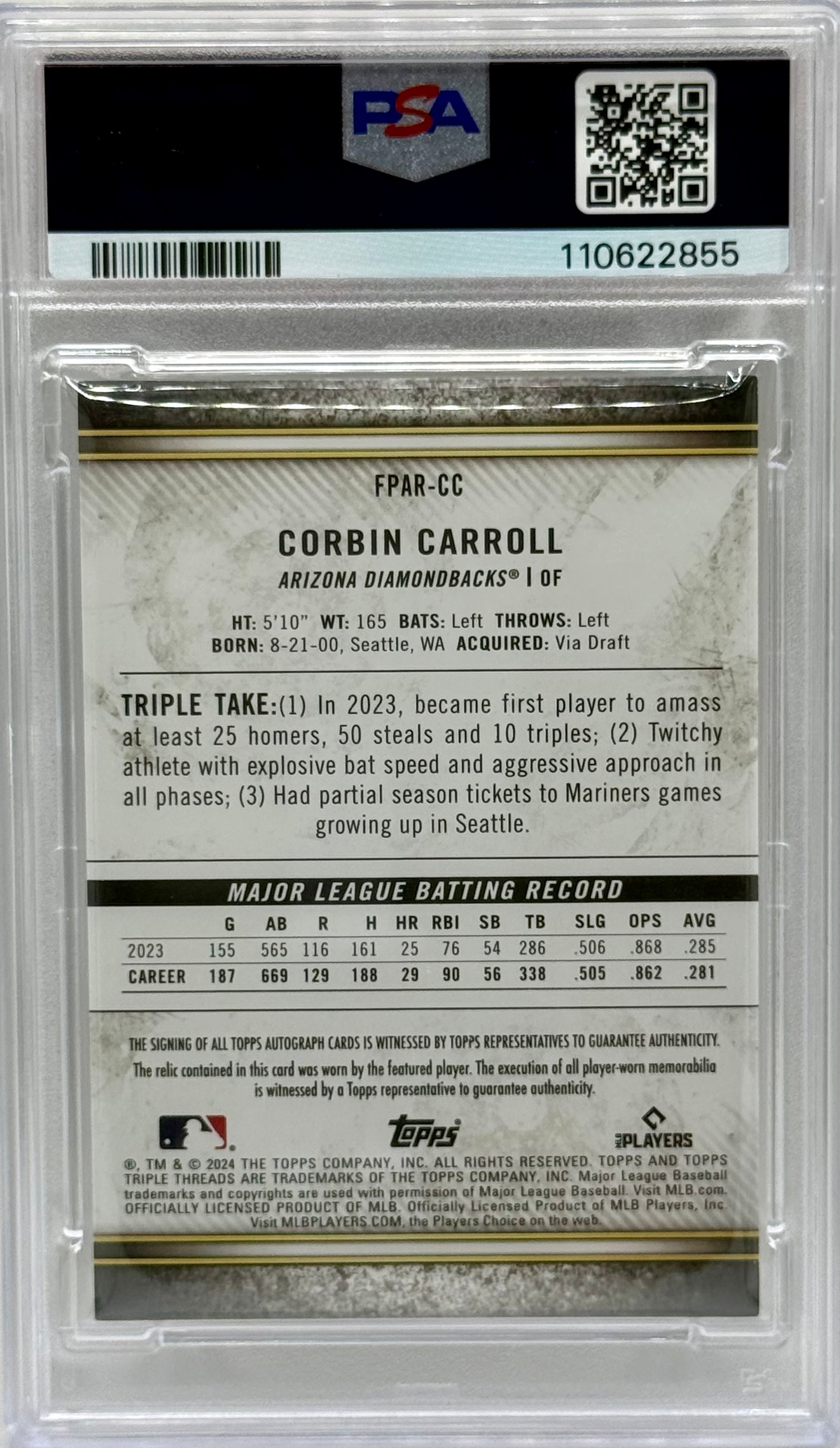 Corbin Carroll 2024 Topps Triple Threads Player Worn Auto /99 PSA 10